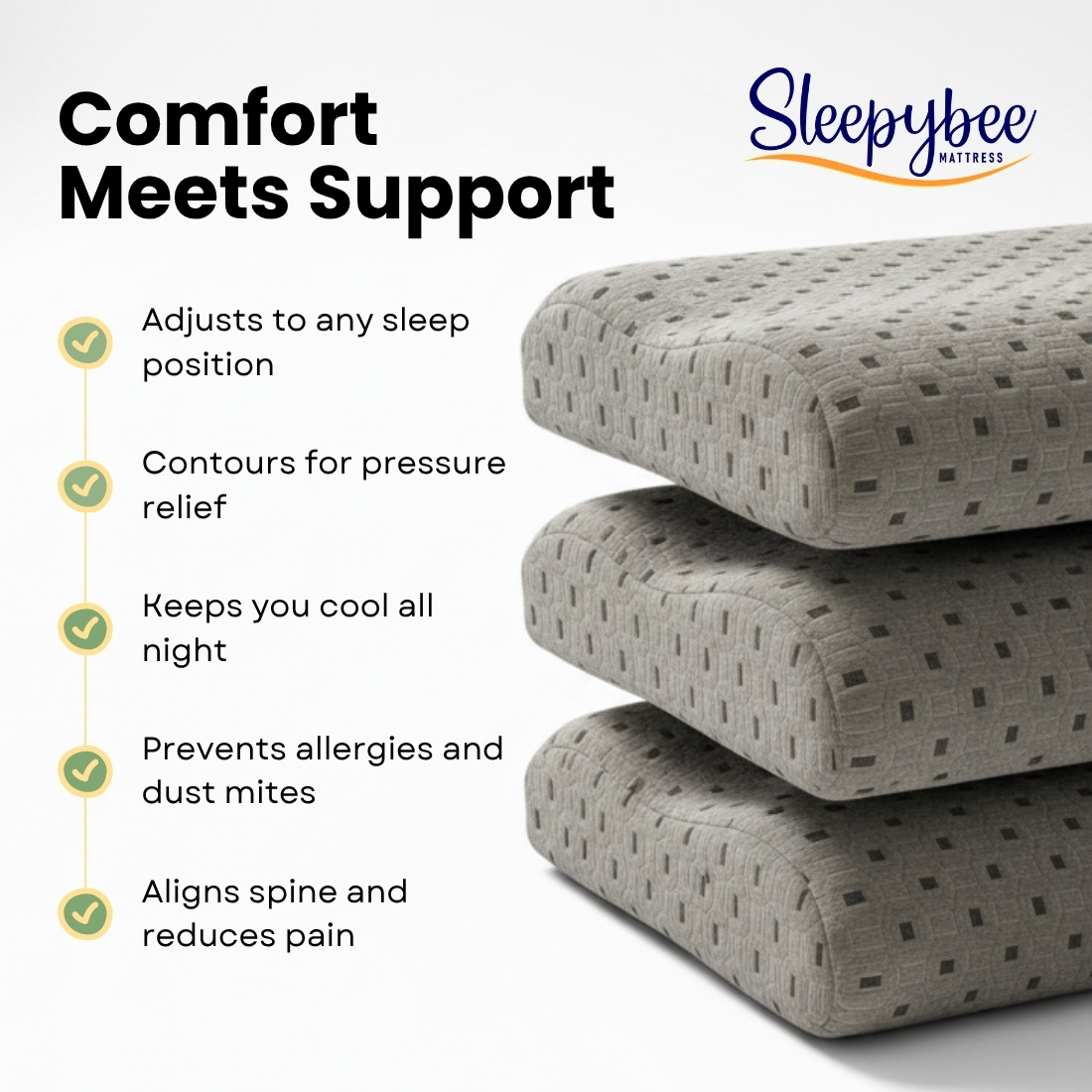 Experience comfort engineered for your body with SleepyBee’s premium contour pillow—crafted to elevate your sleep quality naturally.
